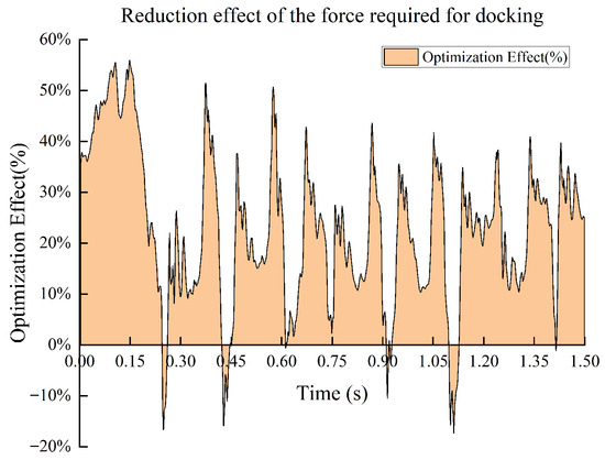 The reduction in docking force is illustrated in Figure 20. The results indicate that the average force required for docking between different AUVs decreases by approximately 22.76% compared to the pre-optimization configuration. Although some brief instances do not show any reduction, these occurrences are minor and negligible in the overall analysis.