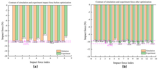 Finally, the impact force measurement experiment showed relative errors of 2.41% before optimization and 8.19% after optimization compared to the simulation results, demonstrating the accuracy and reliability of the dynamic model.