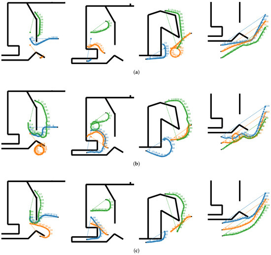 - Alonso-Mora, J.; Breitenmoser, A.; Rufli, M.; Beardsley, P.; Siegwart, R. Optimal reciprocal collision avoidance for multiple non-holonomic robots. In Proceedings of the Distributed Autonomous Robotic Systems: The 10th International Symposium; Springer: Berlin/Heidelberg, Germany, 2013; pp. 203–216. [Google Scholar]