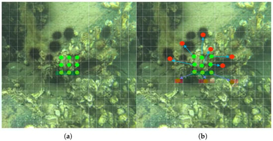 (a) Sampling positions of standard 3 × 3 convolution. (b) Sampling positions of DCN. The green dots represent the standard sampling points, and the red dots represent the offset sampling points.