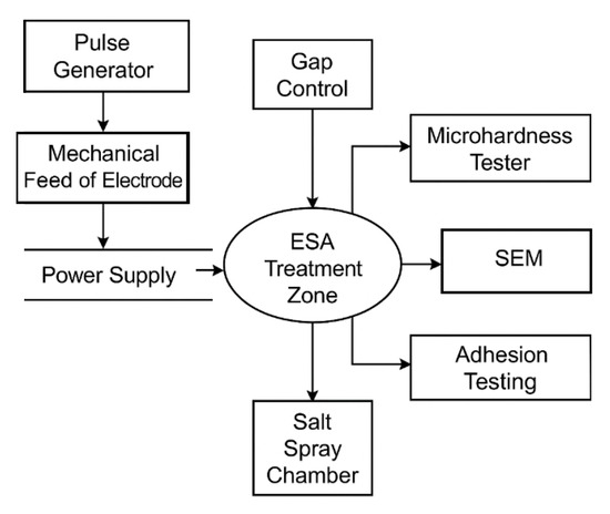 The ESA process parameters listed in Table 2 were used to form the coatings on the samples, after which tests for microhardness, adhesion, corrosion resistance, and wear resistance were performed in accordance with standard methods.