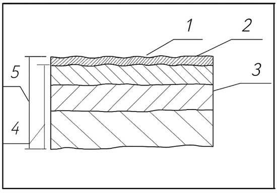 Electrospark alloying involves electrical erosion and the transfer of anode material to the cathode during pulsed discharges in a gas environment. The process begins when the anode approaches the cathode; at a breakdown distance, a spark discharge initiates, often continuing until the electrodes touch [6,7,9,13]. After the interelectrode gap breaks down, localised melting and evaporation occur on the electrodes, leading to electrical erosion. The material eroded from the anode is primarily deposited on the cathode, forming a surface layer with specific performance characteristics and physical and chemical properties. Since this transfer occurs in a gas environment, chemical compounds may form, causing the particles detached from the anode to differ from the original anode material (Figure 6).