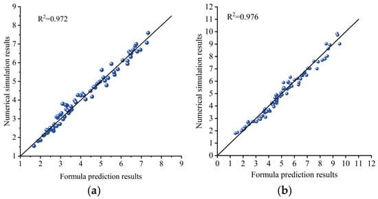 Formula prediction results versus numerical simulation results. (a) wcavity; (b) wdeep.