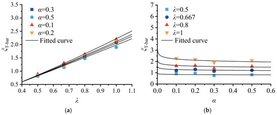 Effect of α and λ on the average accumulative plastic strain. (a) ξT-bar versus λ; (b) ξT-bar versus α.
