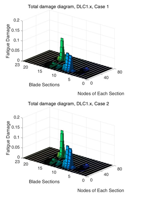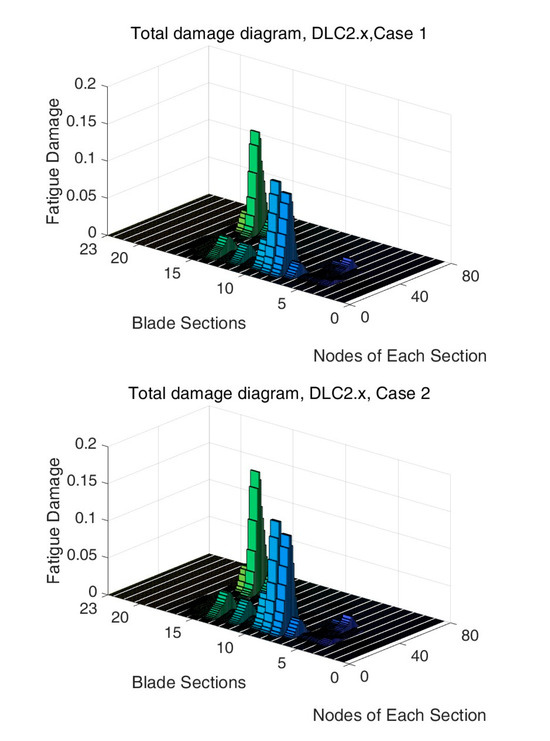 - Shokrieh, M.M.; Rafiee, R. Simulation of fatigue failure in a full composite wind turbine blade. Compos. Struct. 2006, 74, 332–342. [Google Scholar] [CrossRef]