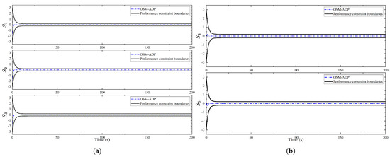 - Compared with conventional prescribed performance control (PPC), where constraints are imposed directly on the error, we use the dynamic sliding-mode function as the direct object of performance mapping. By designing a time-varying power function to constrain the evolutionary trajectory of the sliding-mode surface and simultaneously regulating the amplitude change rate and convergence phase of the sliding-mode surface, we enable the system to maintain the prescribed dynamic qualities under the constrained control force.