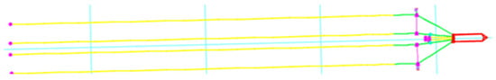 This system is mainly composed of two hydrophone arrays and an air gun. Its structural model is shown in Figure 2. The lines in the figure represent various cable models. A special switch model (Link) can flexibly connect two mass points in the model, enabling the operation of shortening and separating the distance between the mass points. In the cable connection design, the cable Spreader is specifically connected between Coupler A and Coupler B, while the heavy cable Div line plays an important role in maintaining the overall stability of the system. At the same time, there are 4 short ballast heavy cables Diverter Ballast connected to the heavy cable Div line. These short cables are attached to the diverter, further enhancing the balance performance of the system. The hydrophone array, which is the key to signal acquisition in the system, consists of a leader cable Leader, a streamer array Streamer, a tail buoy Tail at the end of the array and a 3D floating body Coupler. Each component works together to ensure the accuracy and stability of signal acquisition. The air gun system responsible for signal transmission is composed of an air gun Airgun, a leader cable Gunleader and an umbilical cable Gunumbilical. The umbilical cable provides power and signal transmission support for the air gun. The specific parameters of the towing cable can be referred to Table 2 and Table 3, and the Poisson’s ratio of all line types is uniformly taken as 0.5. The system model built according to the above design is shown in Figure 2.