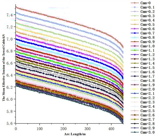 The control equations for each point of the tow cable in the towline array were also obtained in Yang’s experiments, the mathematical relationships of which can be found in [37].