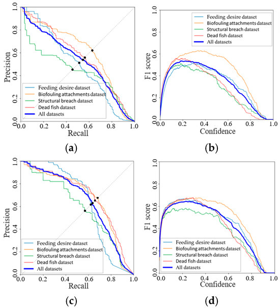 In addition, we conduct additional comparative evaluations. The evaluation metrics for comparison included the PR curve and F1 scores, with their respective definitions provided in Equation (8). In Equation (8), TP represents the probability of actual positive samples being forecasted as positive, FP denotes the probability of actual negative samples being forecasted as positive, FN represents the probability of actual positive samples being forecasted as negative, and TN represents the probability of actual negative samples being forecasted as negative.