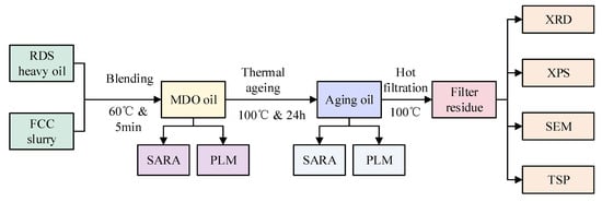 39]. The resulting incompatibility manifests as excessive total sediment potential (TSP), jeopardizing fuel quality and engine safety. Despite its technical urgency, the mechanistic interplay between FCC slurry oil–RDS heavy oil blending ratios, asphaltene colloidal stability, and aggregation evolution remains inadequately understood.