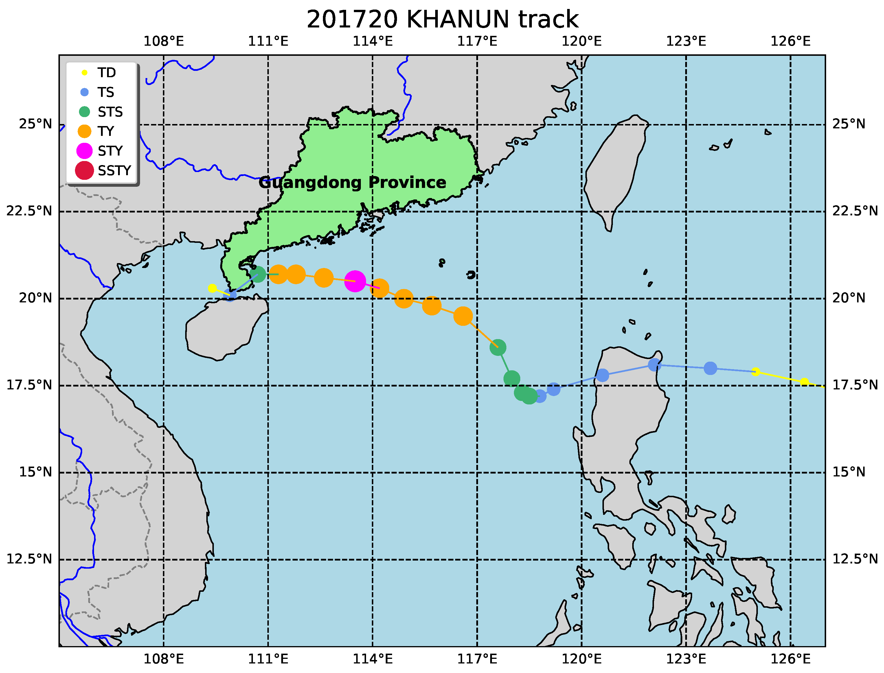 Khanun formed in the northwest Pacific Ocean and dissipated over the South China Sea. It had the characteristics of “strong landing intensity, long land retention time, and wide impact area,” which caused serious casualties and economic losses to many coastal provinces of China. Additionally,