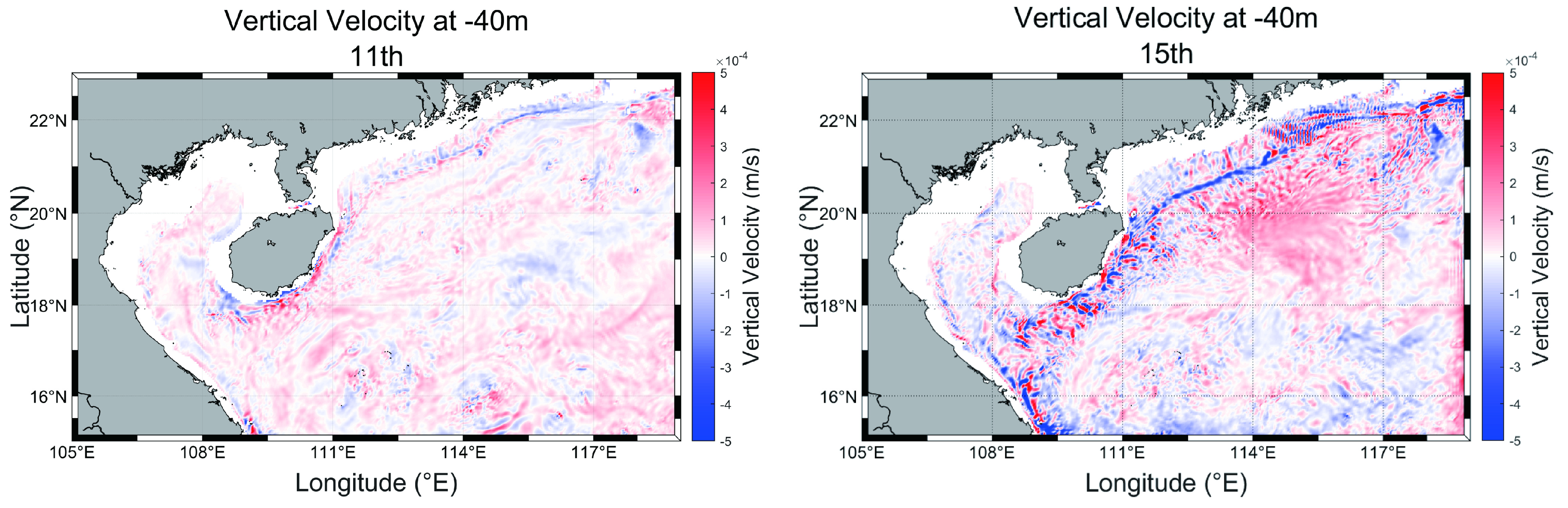 The Regional Ocean Modeling System (ROMS) revealed vertical velocity (