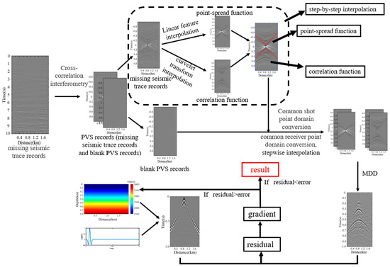 2.1. Robust Multi-Dimensional Deconvolution (RMDD) Seismic Interferometry Based on Multi-Domain Stepwise Interpolation