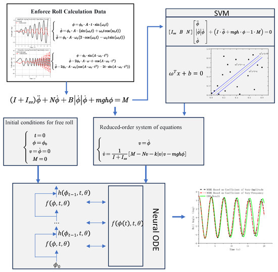 Based on this, this study aims to couple the SVM learning algorithm and the NODE algorithm for analysis. Building on ship data from constant-amplitude variable-frequency and constant-frequency variable-amplitude roll, a coupled model for roll coefficient calculation and roll motion prediction is constructed. The structure of this paper is as follows: Section 2 introduces the coupled SVM-NODE model; Section 3 introduces the data foundation obtained from forced roll calculations; Section 4 covers data training and hyperparameter analysis; Section 5 presents prediction results and conclusion analysis.