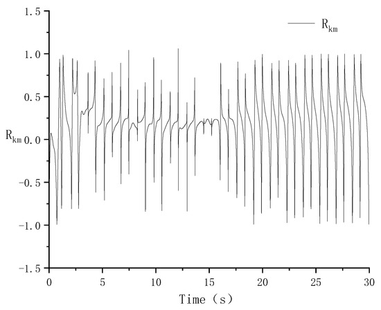 In Figure 4, the roll angle over time is generally consistent across the three grid schemes, with deviations mainly at peaks and troughs. The medium and fine grids are close, while the coarse grid shows relatively larger differences. Convergence analysis of the three grids (Figure 5) shows mostly within [−1, 1]. Larger absolute values of correspond to peaks and troughs, showing strong regularity over time, satisfying convergence requirements. Therefore, the Mesh B scheme is used for subsequent calculations.