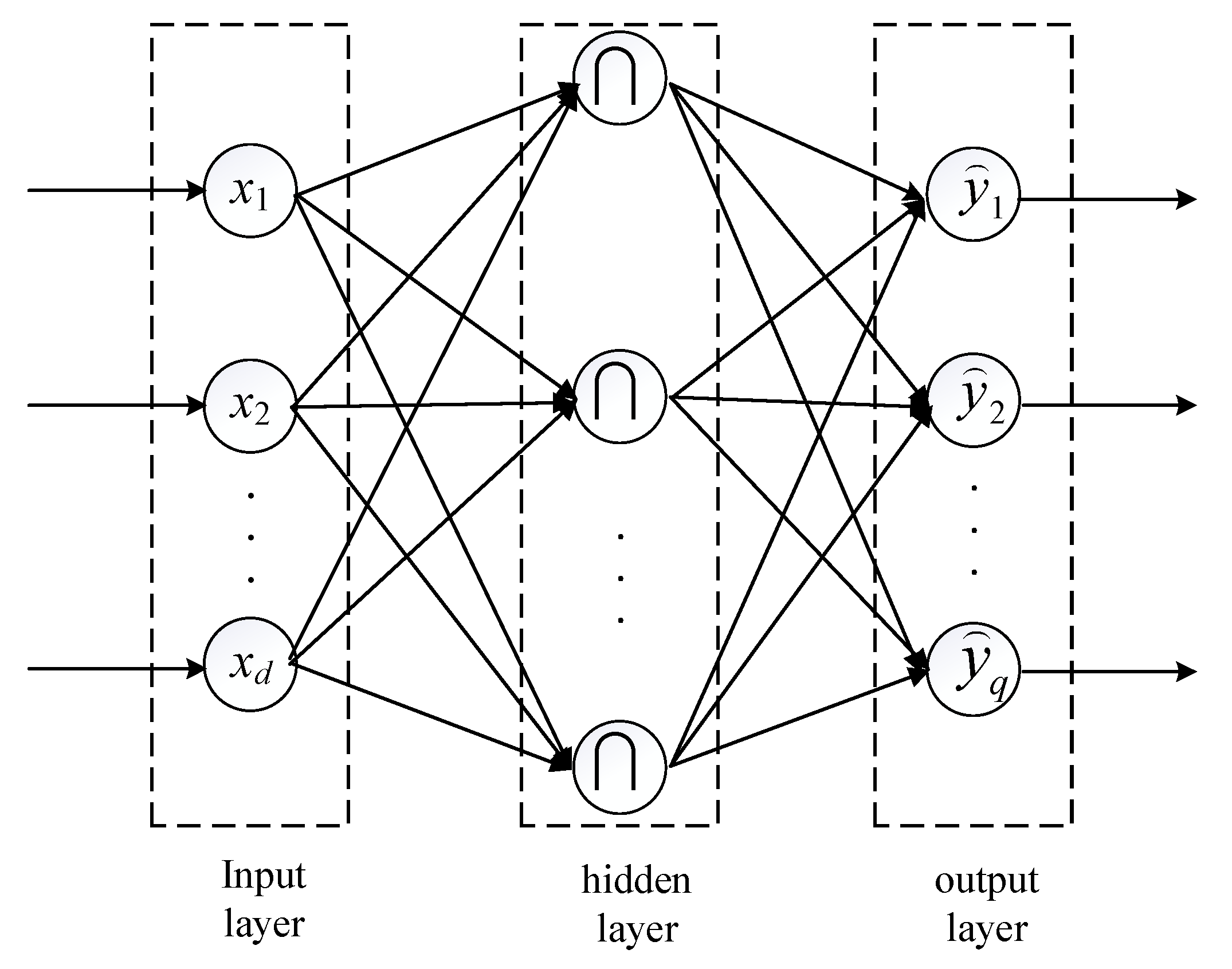 RBF neural networks utilize radial basis functions as their activation function. In comparison with backpropagation neural networks, radial basis function neural networks have been shown to exhibit superior training speeds, typically achieving satisfactory training outcomes within a reduced number of iterations. At the same time, they have good predictive capabilities for unknown data, can effectively handle noise and interference in data, and have strong robustness. The structure of an RBF neural network is shown in