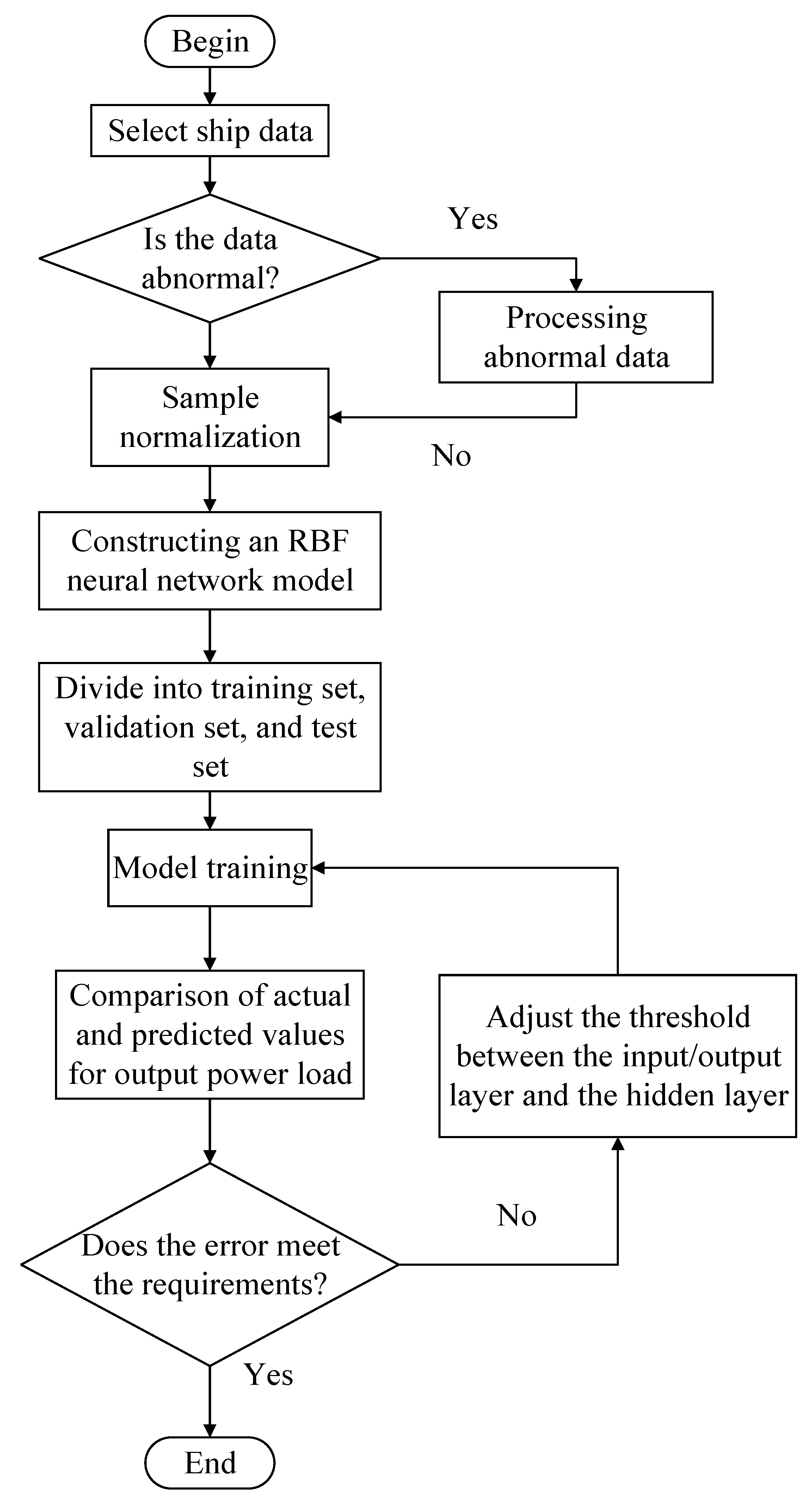 The steps for predicting the ship power load using RBF neural networks are shown in
