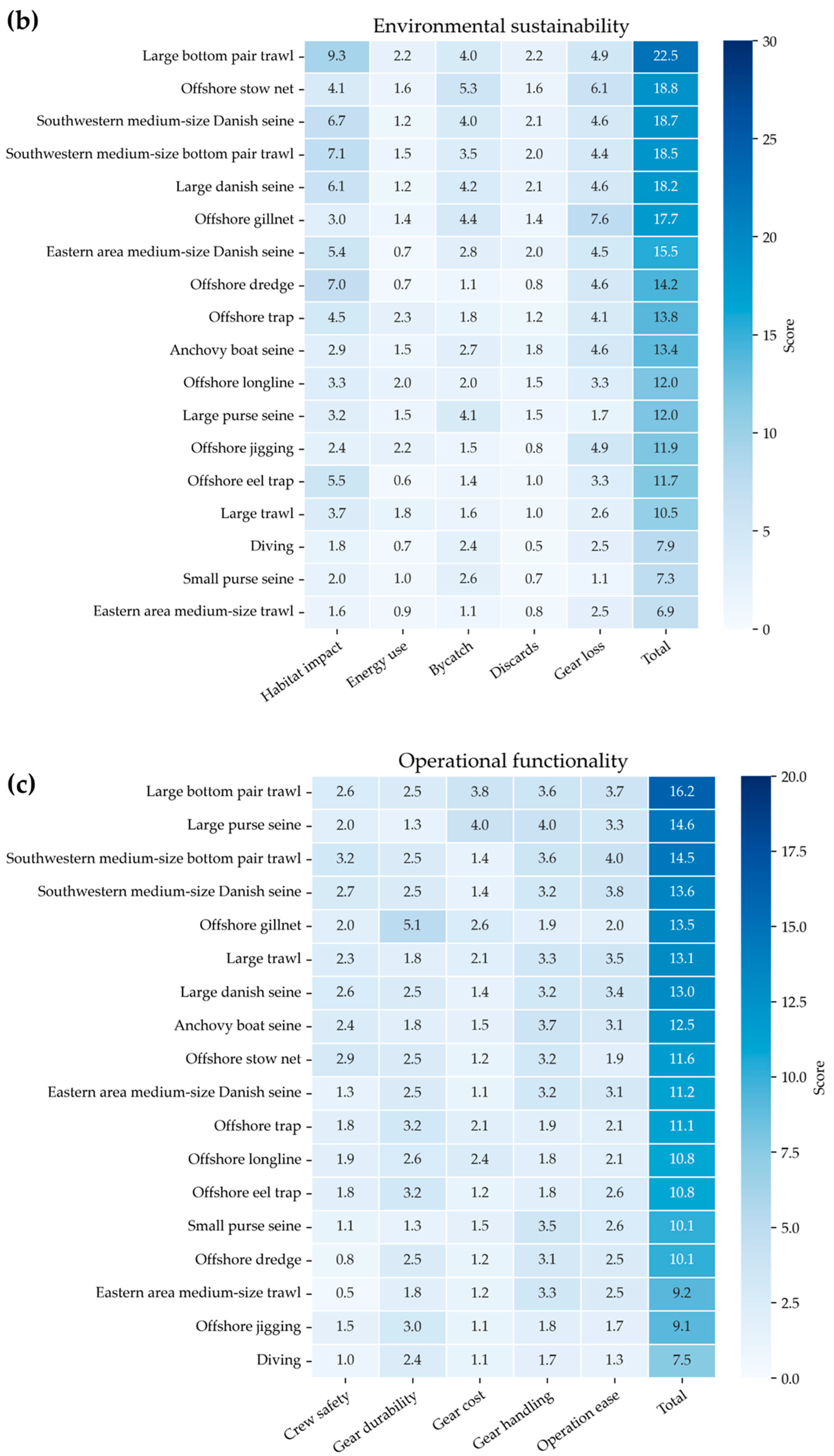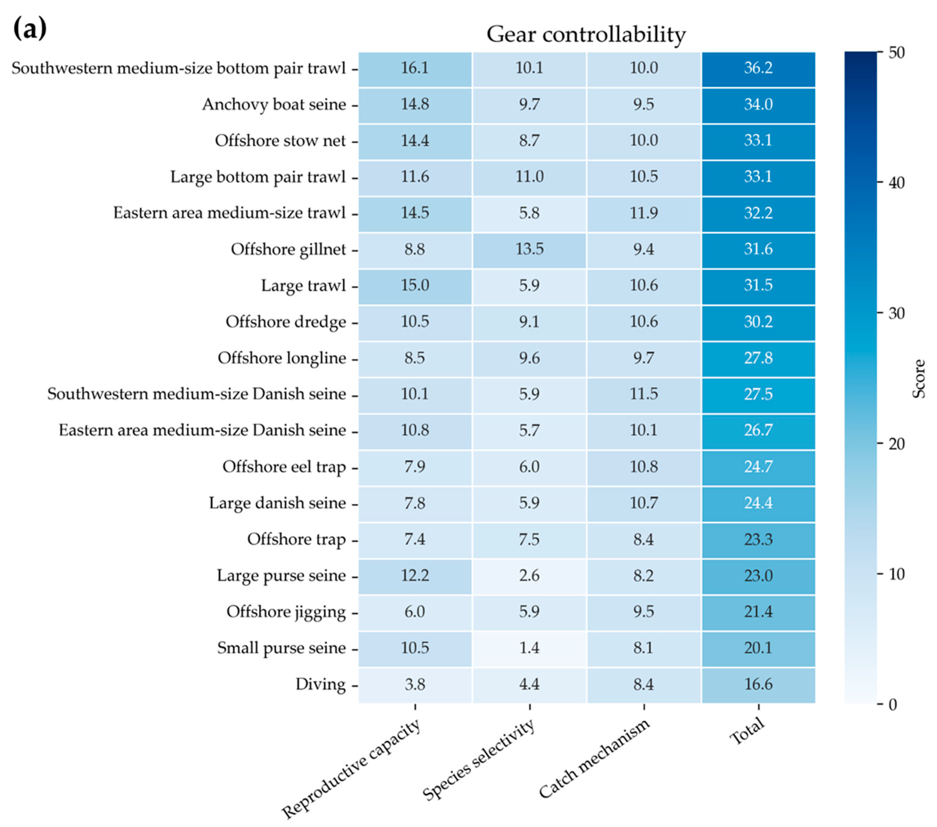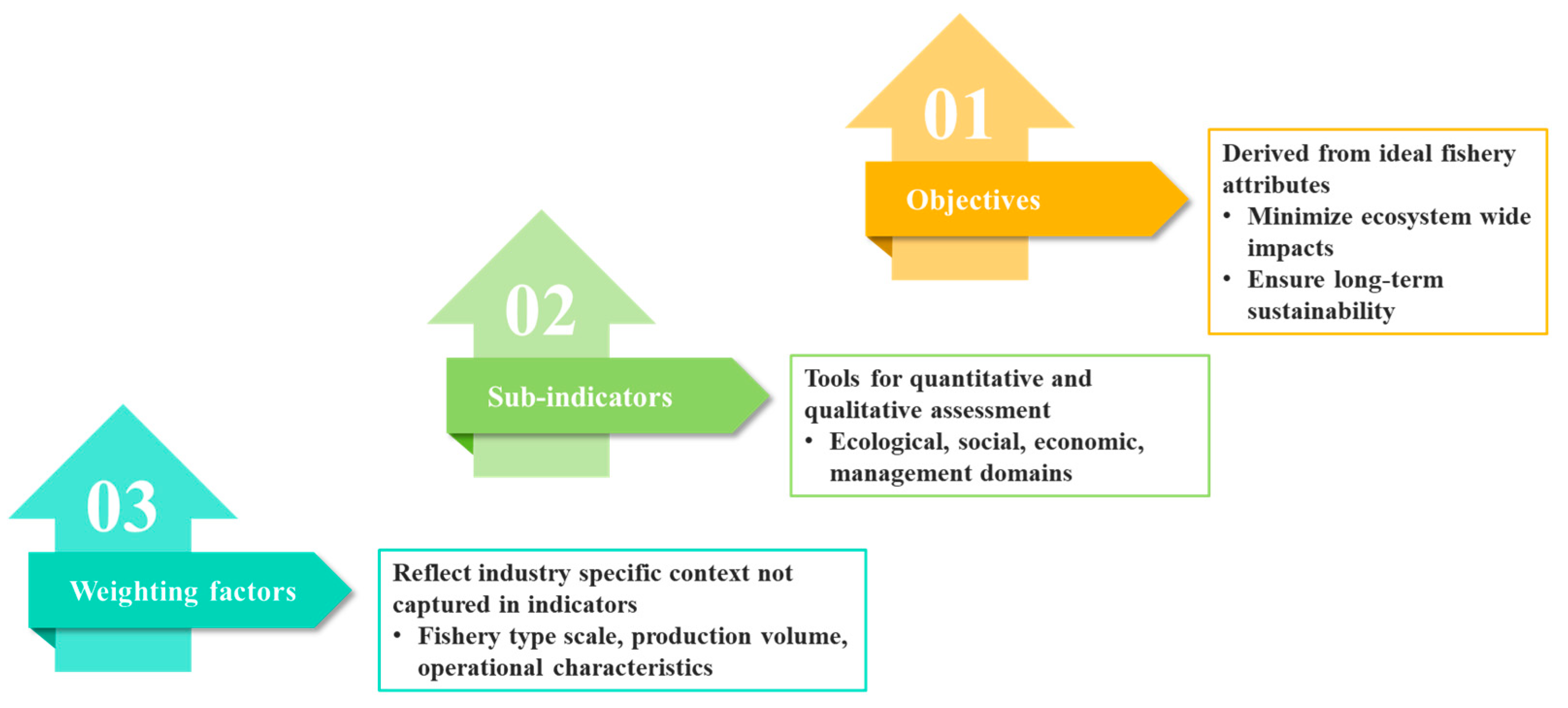 Unit of analysis | 24 coastal and offshore fisheries in Korea (gear-based index) | 10 gear types | 15 fishing technologies/gear types | Major Canadian fishing gears | Policy/indicator system at national and international levels | Tier 1 (quantitative), Tier 2 (qualitative) → species, fishery, ecosystem units | Species–fishery–ecosystem–socioeconomic units combined with climate scenarios |