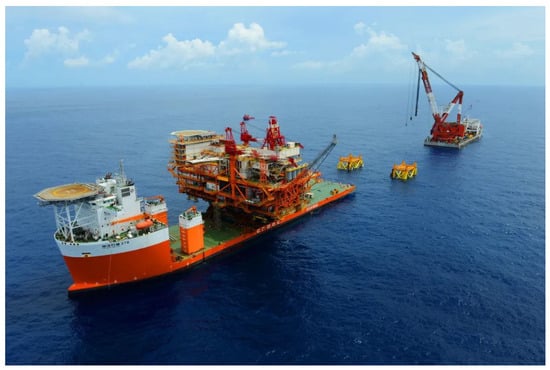 - Bai, X.; Li, D.; Fan, M.; Yi, C. Research and application of floatover pperations using dynamically positioned vessels in South China Sea. In Proceedings of the International Ocean and Polar Engineering Conference, Busan, Republic of Korea, 15–20 June 2014; p. 14-411. [Google Scholar]