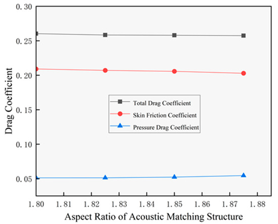 Variation in drag coefficient of the acoustic matching structure with length-to-diameter ratio.