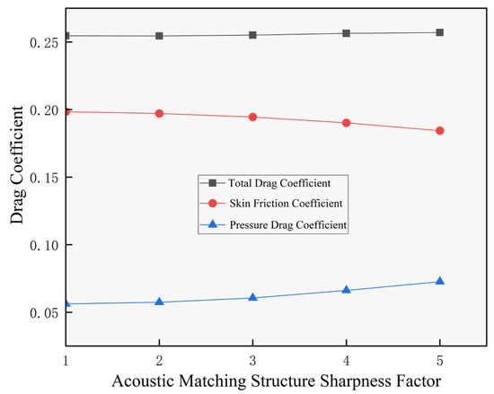 Variation in the drag coefficient of the acoustic matching structure with the sharpness factor.