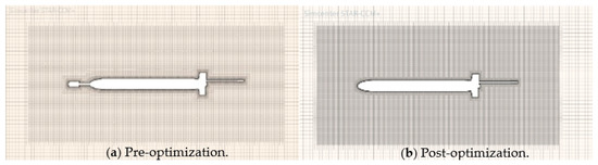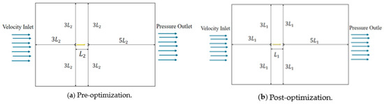 Flow field computational domain. (a) Pre-optimization. (b) Post-optimization.