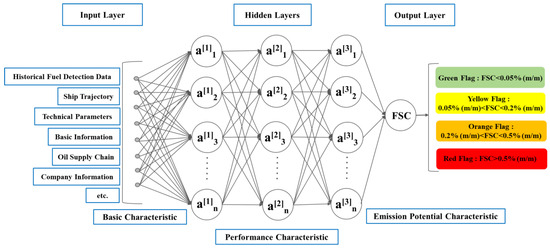 The output layer consists of a single neuron responsible for generating the estimated sulfur content of marine fuel. This estimation serves not only as a basis for real-time estimation but also supports risk classification when integrated with threshold criteria. Consequently, ships can be categorized into three risk levels: low-risk, medium-risk and high-risk targets.