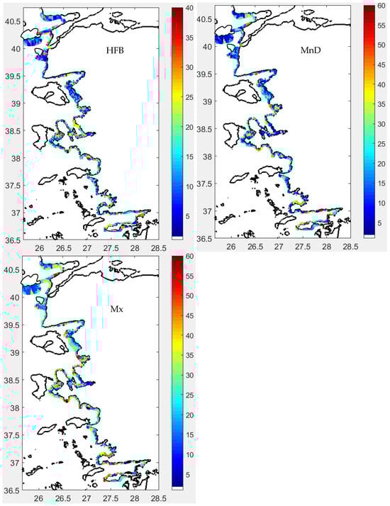 Cluster 3 prevailed in the northern part of the Aegean, associated with high MnD and MxD but low SvE.