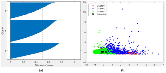 Using a normalized and consistent data matrix derived from the acoustic data, a series of statistical analyses was conducted to estimate the spatiotemporal structure of fish schools. To determine the optimal number of clusters, a silhouette analysis was applied to the data matrix. Based on the silhouette results, a k-means clustering analysis was performed using the specified number of clusters. Significant variables were identified for each cluster, and each cluster was then color-coded and plotted on a map to illustrate its spatial distribution. To assess multicollinearity among variables, a Principal Component Analysis (PCA) was applied to the data matrix. To evaluate the statistical significance of the cluster separation, a Canonical Analysis of Principal Coordinates (CAP) was performed. Furthermore, bottom depth intervals of 10 m (±5 m), 20 m, 30 m, 50 m, 70 m (±5 m), and ≥80 m were selected to investigate depth-wise variations in key fish school descriptors. For each selected depth, corresponding variables were extracted to form a depth-specific data matrix. These matrices were subjected to PCA, followed by CAP. The relative contribution of each variable was visualized on the PCA configuration using proportional sizing (please look at MATLAB, 2021a, for the details of all statistical analyses used in the present study). Permutated Multivariate Analysis of Variance (number of permutations was 500) was used to test the difference in acoustical variables of fish school among k-means clusters, bottom depths, and diel time (morning: the earliest survey beginning, 06:00–12:00 h, and afternoon: 12:01–22:00 h, the latest survey ending in the day) at p < 0.05.