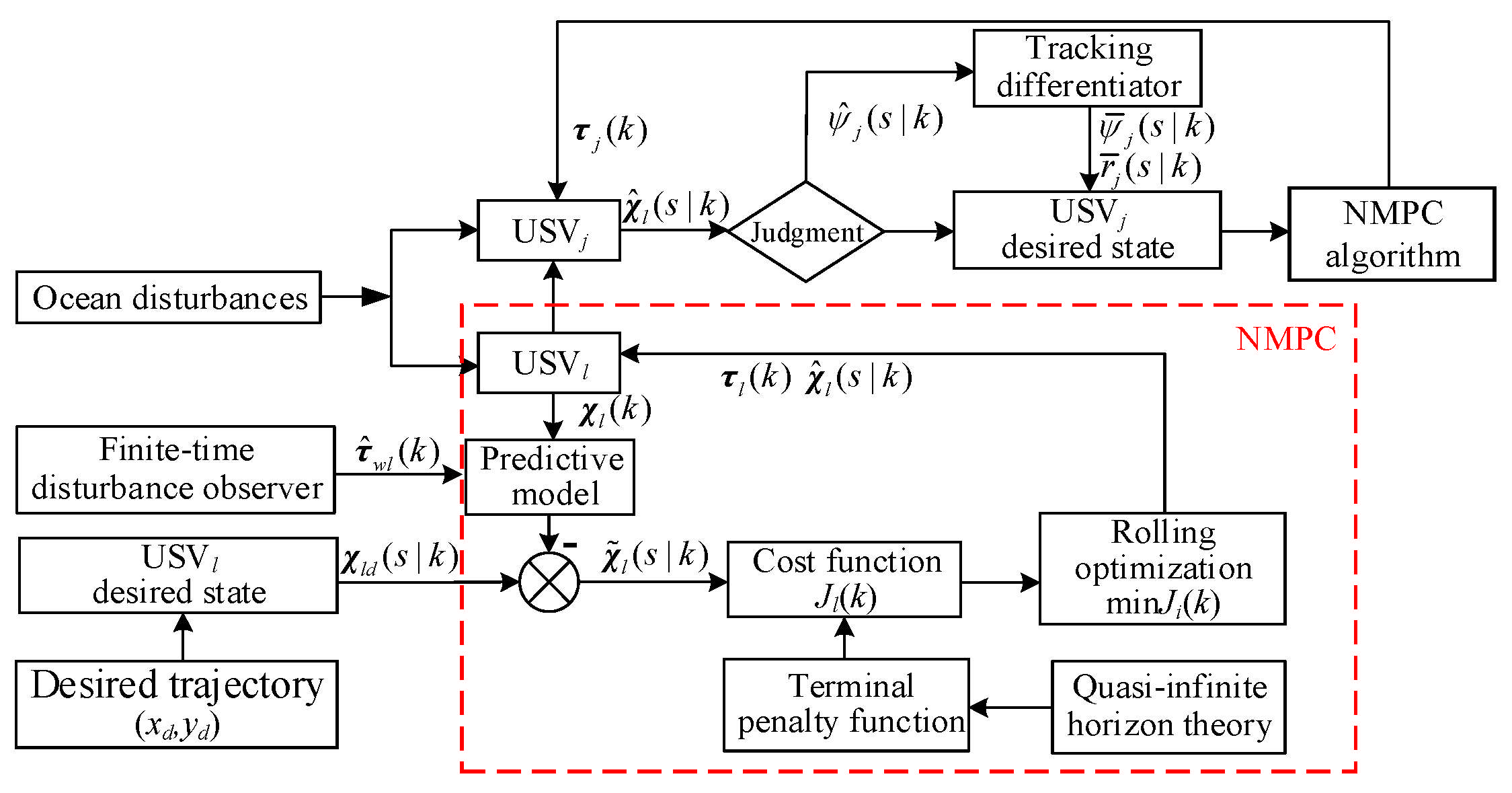 Section 3, a tracking control algorithm for USV formation is designed utilizing the NMPC algorithm in conjunction with a finite-time disturbance observer.