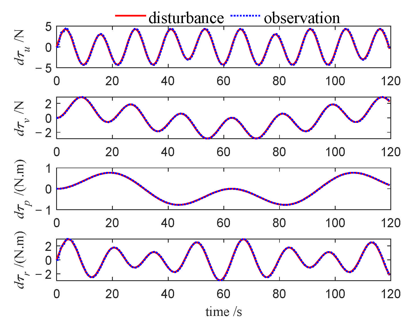 In this section, a finite-time disturbance observer is designed to estimate and compensate for ocean disturbances, thereby enhancing the robustness of the control algorithm. Let