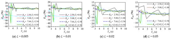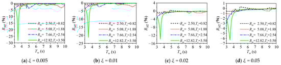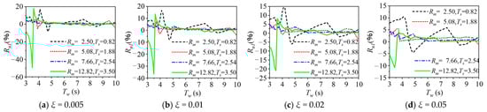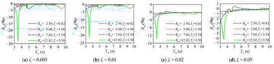 - The water–cylinder interaction can significantly influence the seismic responses of the cylinder, especially when the mass ratio is small. Generally, the effects of water–cylinder interaction decrease as the damping ratio increases.