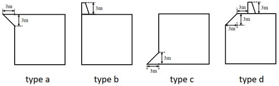 To enhance the breakwater’s performance, the caisson plays an essential role. This study optimizes the caisson’s geometry by proposing four novel shapes and simulating their behavior, as shown in Figure 15. It should be noted that the crest added to the shapes of Types a and b are intended to prevent wave overtopping, while the shape of Type c is designed to prevent scour at the base of the structure. Finally, the shape of Type d is designed to prevent both overtopping and sliding processes of the caisson.