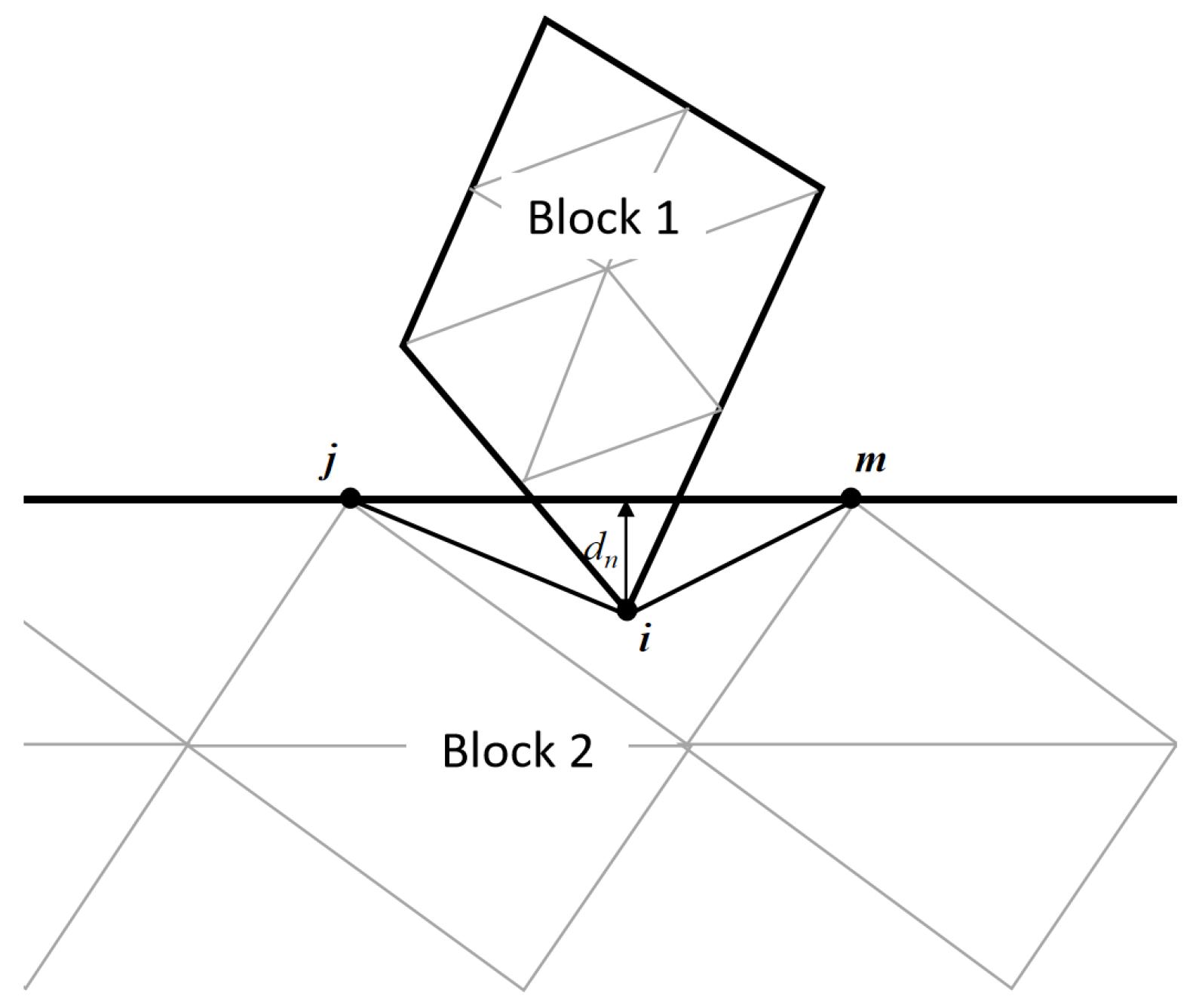 - Shi, G.H. Discontinuous deformation analysis: A new numerical model for the statics and dynamics of deformable block structures. Eng. Comput. 1992, 9, 157–168. [Google Scholar] [CrossRef]