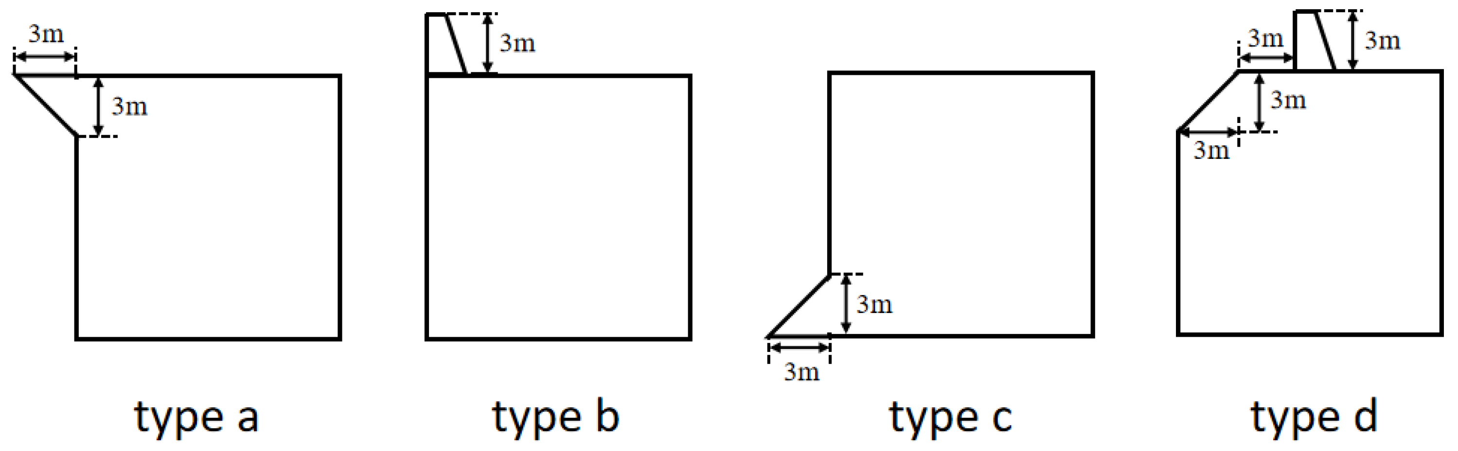 - Four caisson shapes were investigated. The simulation results show that the triangular crest added to the shapes of types (a) and (b) prevent wave overtopping, while the shape of type (c) prevent scour at the base of the structure, and shape of type (d) prevent both overtopping and sliding processes of the caisson.
