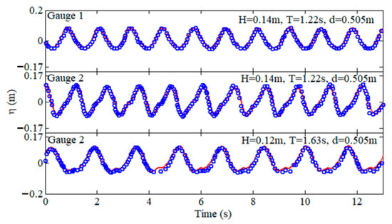 In this study, the simulation duration for each case was set to eight wave periods, with a sampling interval of 0.2 s for computational results. The solver employed an adaptive time-stepping scheme, wherein the time step for each iteration was constrained by the Courant number. In computational fluid dynamics, an excessively small Courant number results in significantly diminished computational efficiency, while an excessively large value may lead to numerical instability and divergence. After a few tests, the maximum Courant number for all cases was set to 0.25 to balance the numerical stability and computational efficiency.