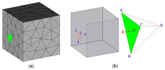 Example of the re-meshed structural mesh (a) External surfaces of valid elements; (b) Normal vector of the external surfaces.