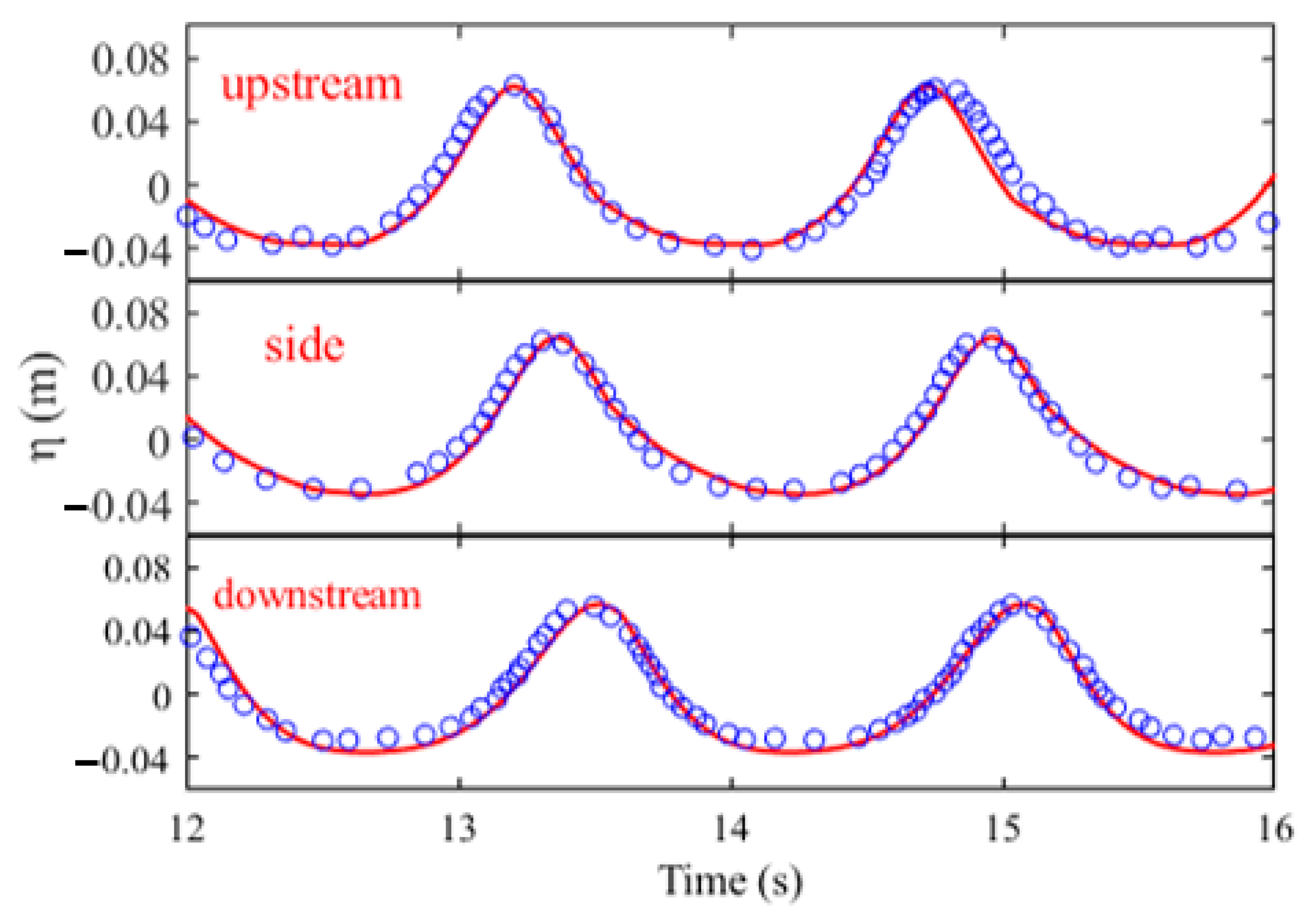 Figure 5 shows that the numerical results are in good agreement with experimental measurements, which further confirms the reliability of OlaFlow and supports its use in subsequent numerical investigations of jacket foundations.
