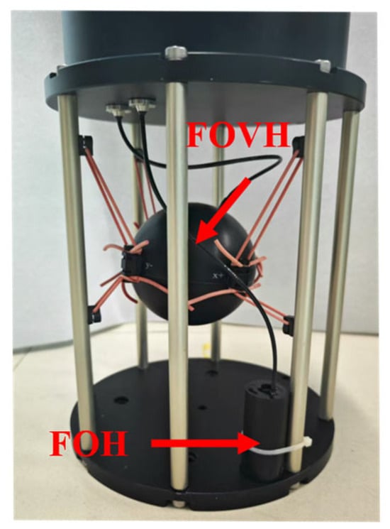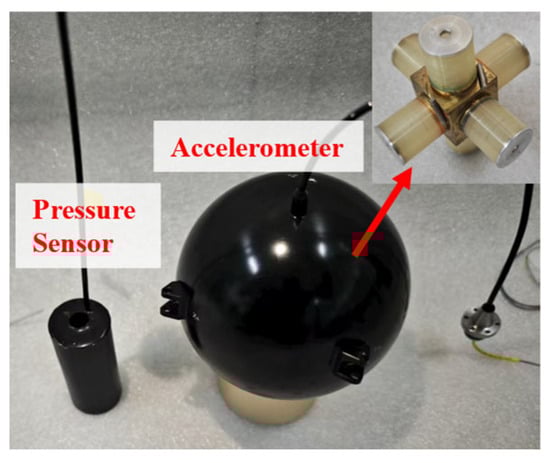 The pressure sensor and accelerometer were integrated into one frame, with their acoustic centers within 15 cm, as shown in Figure 9. The accelerometer was suspended by rubber bands to maintain stable underwater orientation. Based on the laboratory results (Section 3.2), we fixed the pressure sensor configuration (LA on the inner mandrel, SA on the outer mandrel) and evaluated the FOVH polarity.