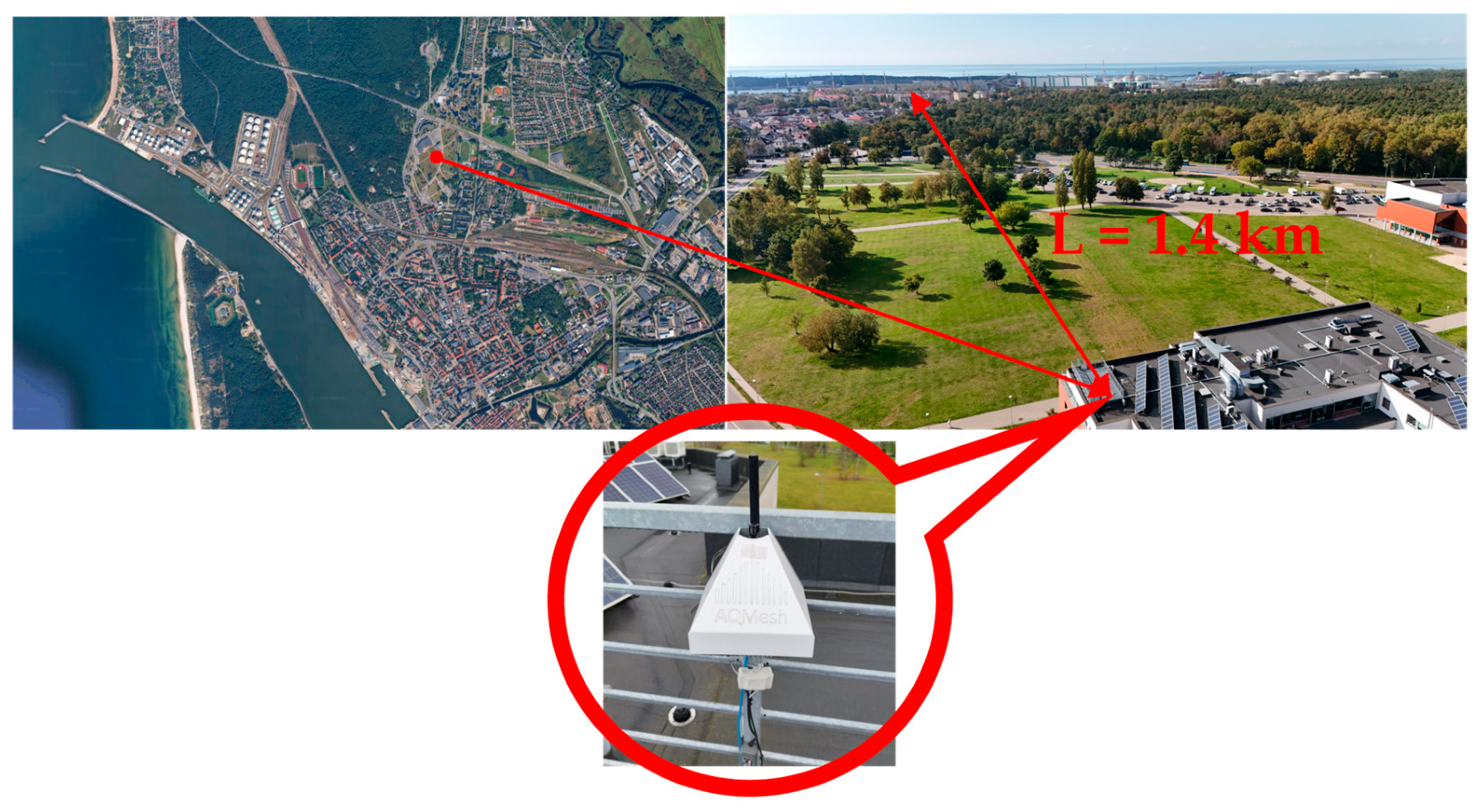 - Air Quality Monitoring—Technical Specifications. Available online: https://www.aqmesh.com/products/technical-specification/ (accessed on 21 October 2025).