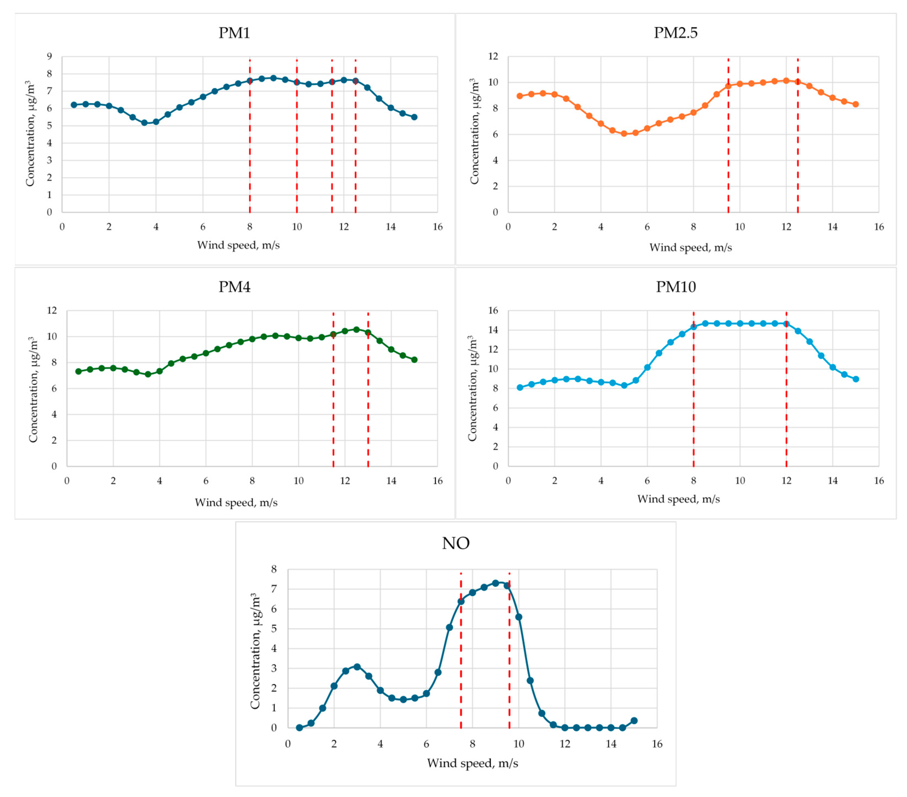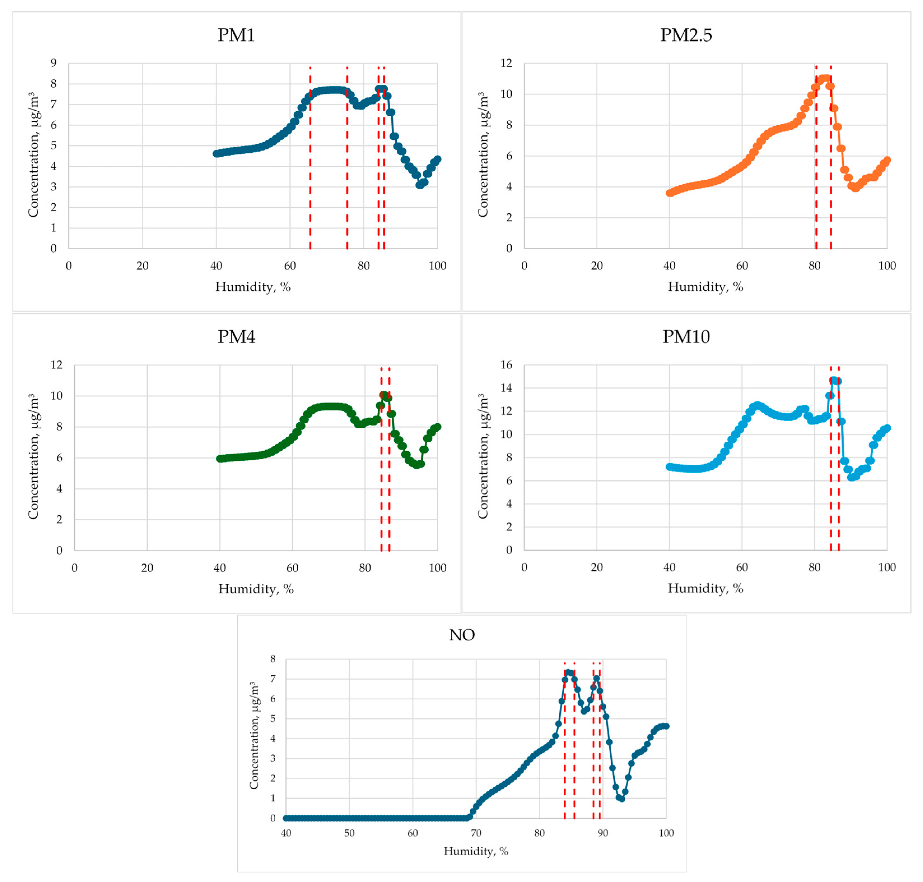 | PM10 | Optical particle counter | µg/m3 | 0–250,000 µg/m3 | >0.85 | 5 µg/m3 |