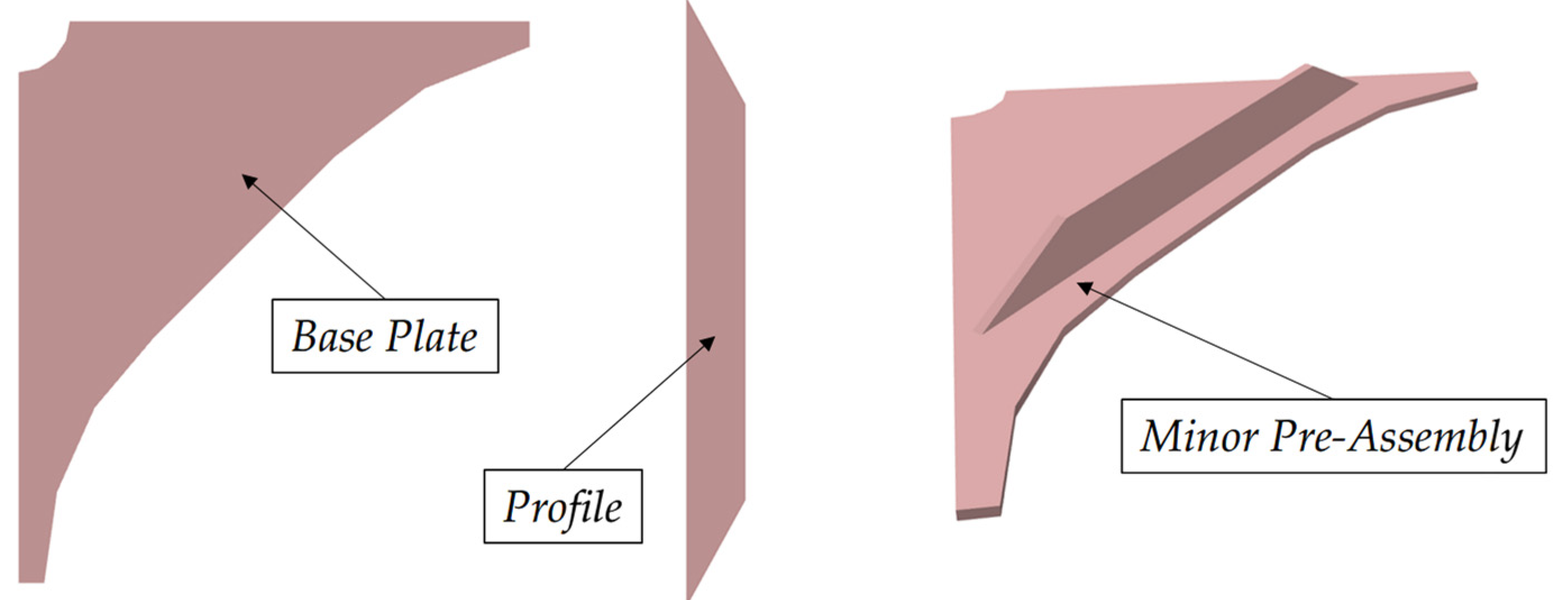 Figure 3). If the construction elements continue to be divided into smaller pieces each time, minor pre-assemblies are obtained, they are the simplest elements that form the ship structure. These pieces are mostly made up of a base, and one or several welded profiles (