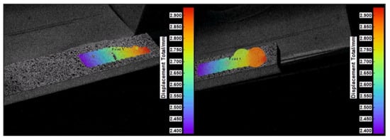Example of composite specimen (B2) Dantec left and right camera images—measurement point.