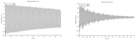 Out-of-plane displacement for a 1 s record time at two points on the beams (see Figure 9).