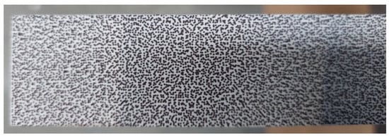 A speckle pattern was applied to the tip of the specimen. The cameras and lighting sources were mounted on a tripod. The cameras were configured at an approximately 20-degree stereo angle, such that the sample was centrally positioned within the camera views, maintaining a distance of 55 cm from the cameras to the sample, as illustrated in Figure 12. Following the alignment of the cameras, the lighting sources were oriented and adjusted accordingly. The focus of the cameras was manually adjusted directly from the lenses and subsequently locked after achieving the sharpest image. To facilitate an increased sampling frequency, the image was cropped to the area of interest, specifically an approximately 40 × 40 mm plane at the location of the speckle, as shown in Figure 13. The frame rate was then configured to 500 Hz, with the exposure time set at 86 microseconds. Subsequent to these configurations, calibration was performed using a 14mm-10-dot calibration frame, adhering to the standard calibration procedure in which the calibration table is rotated and translated within the field of view of the cameras, approximately at the distance of the sample. Polarizing lenses were affixed to the cameras prior to measurements to mitigate local overexposure during the data acquisition process.