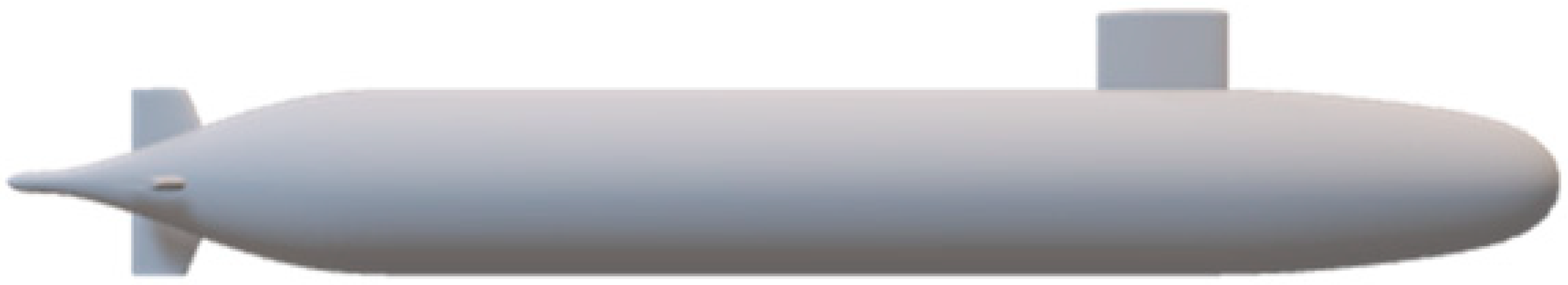 - Groves, N.C.; Huang, T.T.; Chang, M. Geometric Characteristics of DARPA SUBOFF Models (DTRC/SHD-1298-01); David Taylor Research Center, Ship Hydromechanics Department: Bethesda, MD, USA, 1989. [Google Scholar]