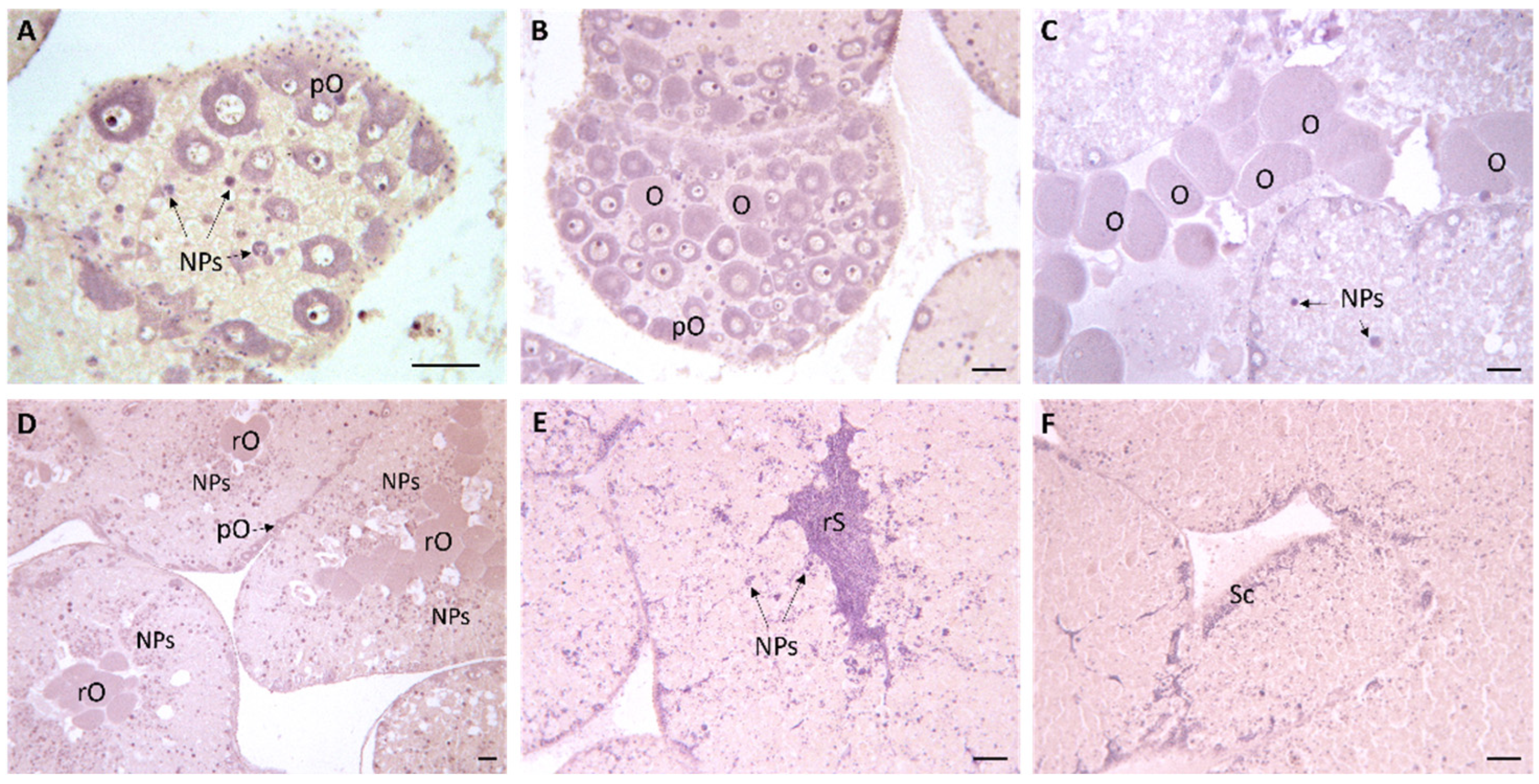 - Schäfer, S.; Köhler, A. Gonadal lesions of female sea urchin (Psammechinus miliaris) after exposure to the polycyclic aromatic hydrocarbon phenanthrene. Mar. Environ. Res. 2009, 68, 128–136. [Google Scholar] [CrossRef]