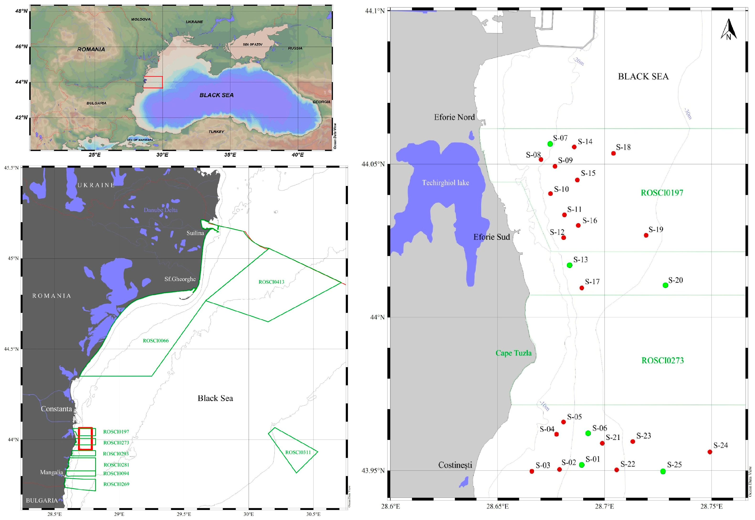 - Bucșe, A.; Pârvulescu, O.C.; Vasiliu, D.; Rădulescu, F.; Lupașcu, N.; Ispas, B.A. Spatial distribution of trace elements and potential contamination sources for surface sediments of the North-Western Black Sea, Romania. Front. Mar. Sci. 2024, 10, 1310164. [Google Scholar] [CrossRef]