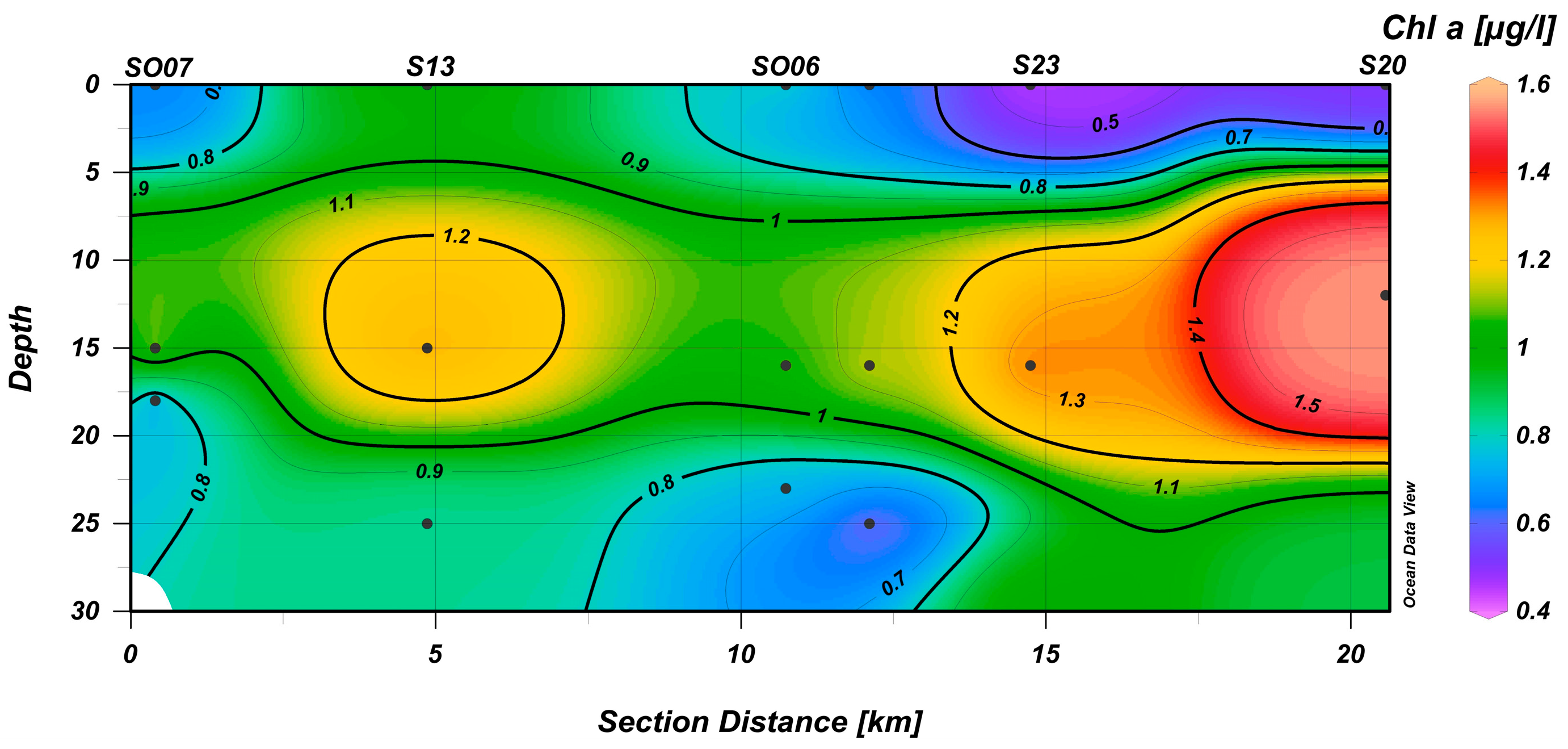 3.1.1. Nutrients, Chlorophyll-a, Total Organic Carbon (TOC), and Total Nitrogen (TN)