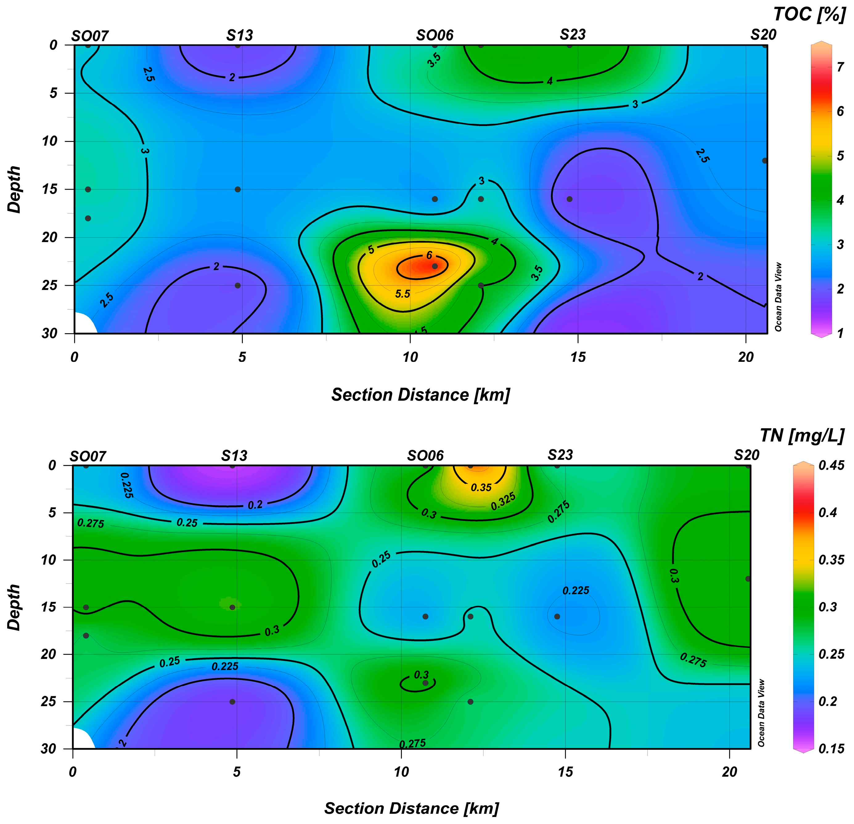 2.3.3. Total Organic Carbon (TOC) and Total Nitrogen (TN)